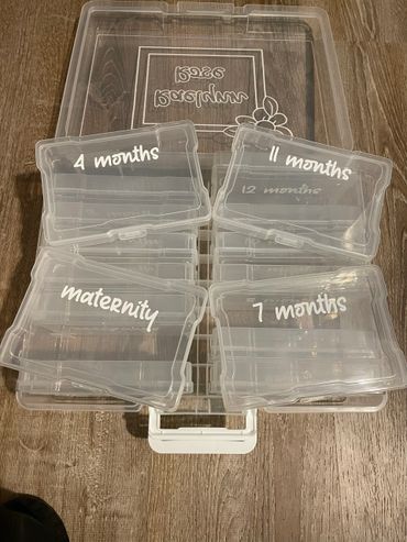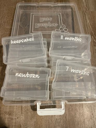 Keepsake Boxes are the perfect place to store your little ones first year keepsakes and pictures.